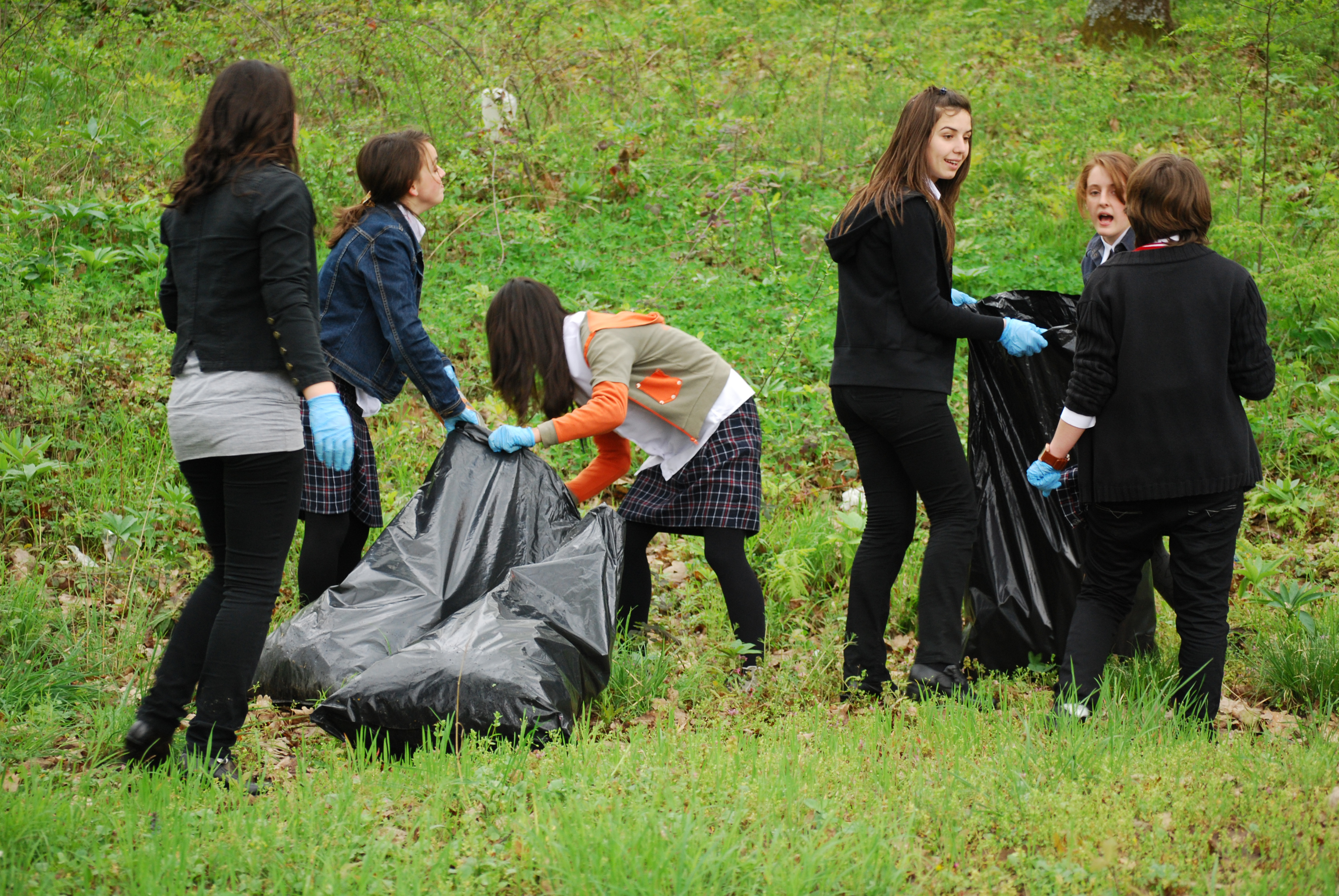 Students from the Jeta Re secondary school clean up the city park as part of the Earth Day celebration organized by the OSCE Mission in Kosovo, Suharekë/Suva Reka, 22 April 2009.
