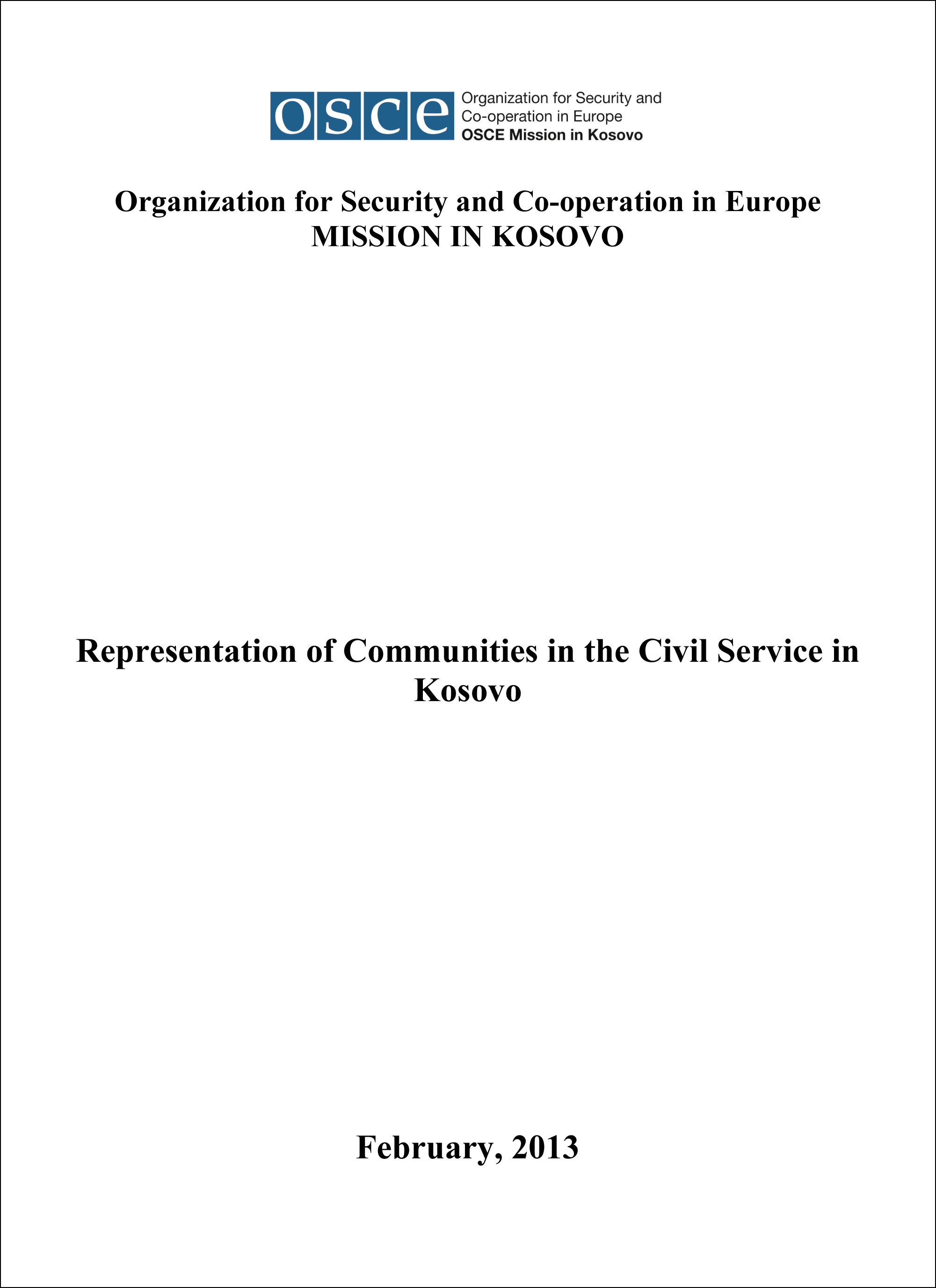 Cover for the publication on representation of Communities in the Civil Service in Kosovo.