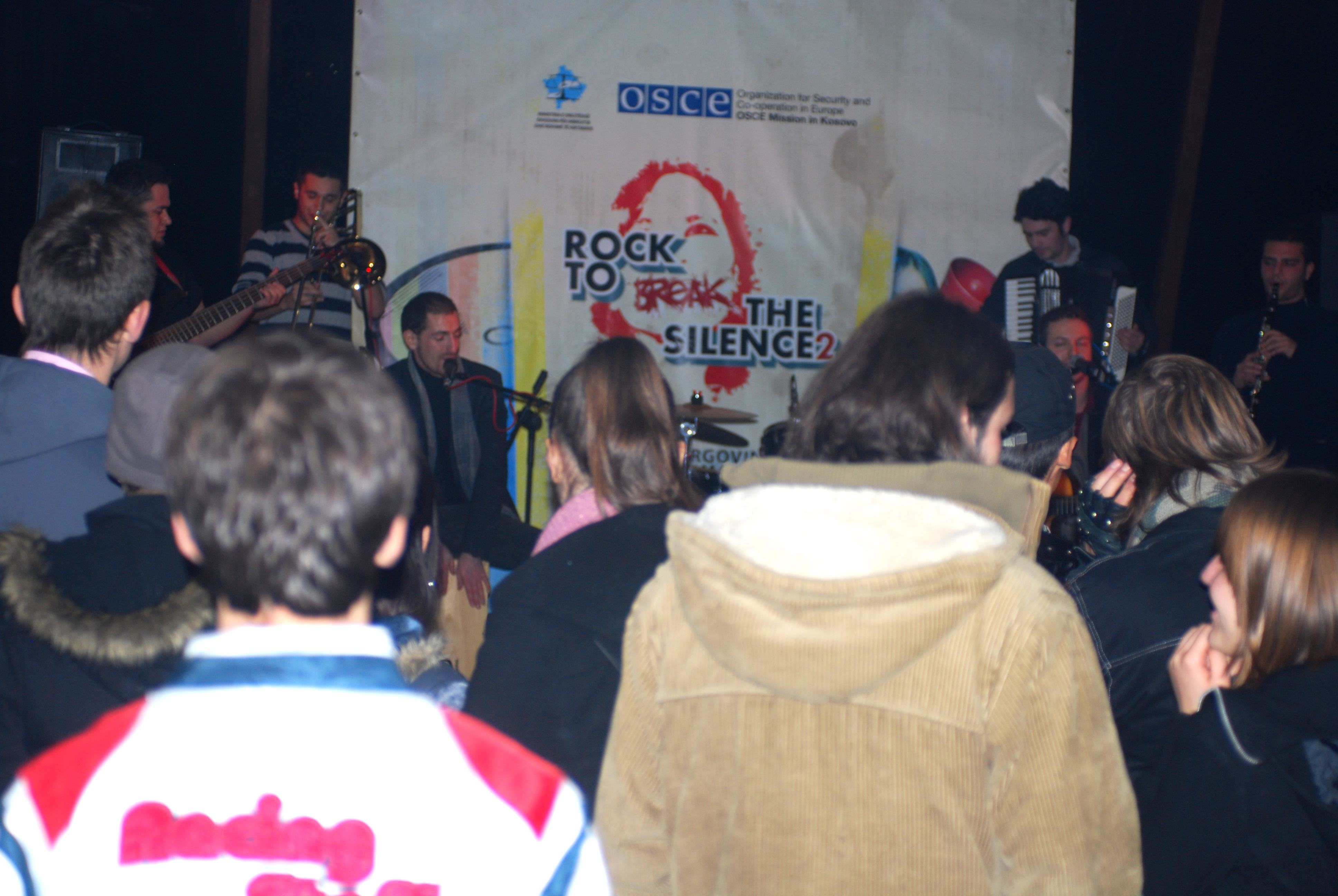 A band performs at a "Rock to break the silence 2! Report human trafficking!" concert to promote Kosovo's anti-trafficking helpline, in Prizren, 4 December 2009.