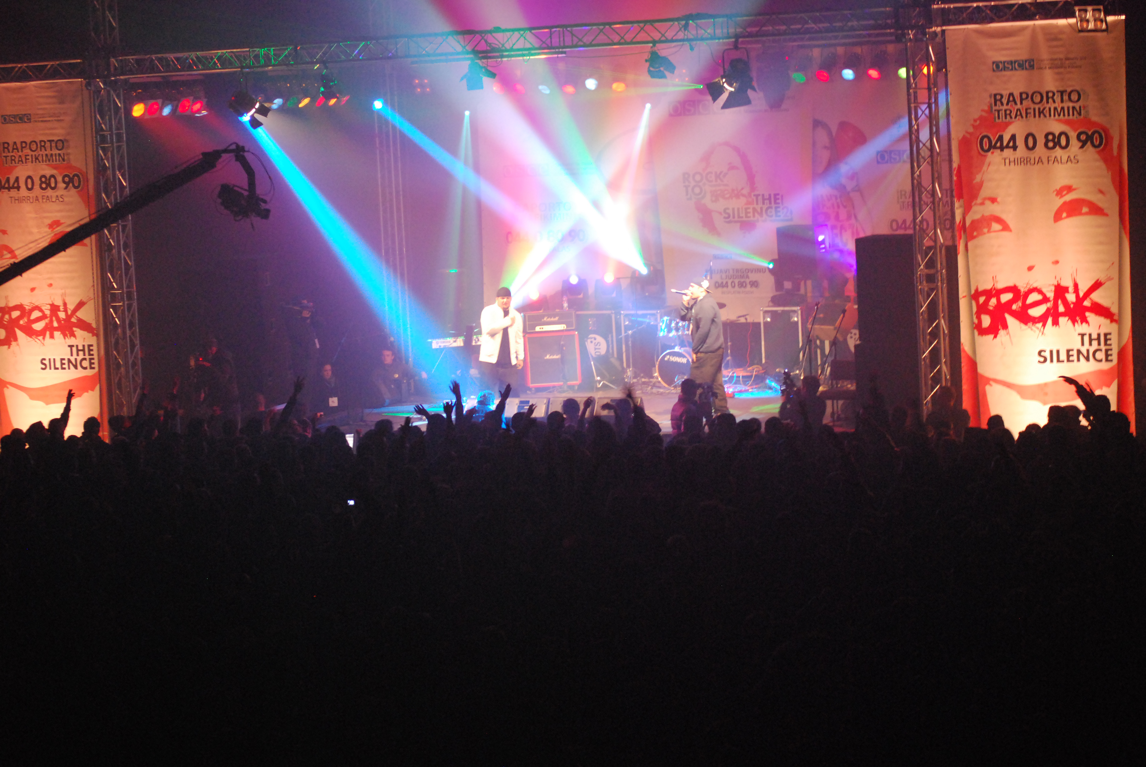 A band performs at a "Rock to break the silence 2! Report human trafficking!" concert to promote Kosovo's anti-trafficking helpline, Prishtine/Pristina, 10 December 2009.
