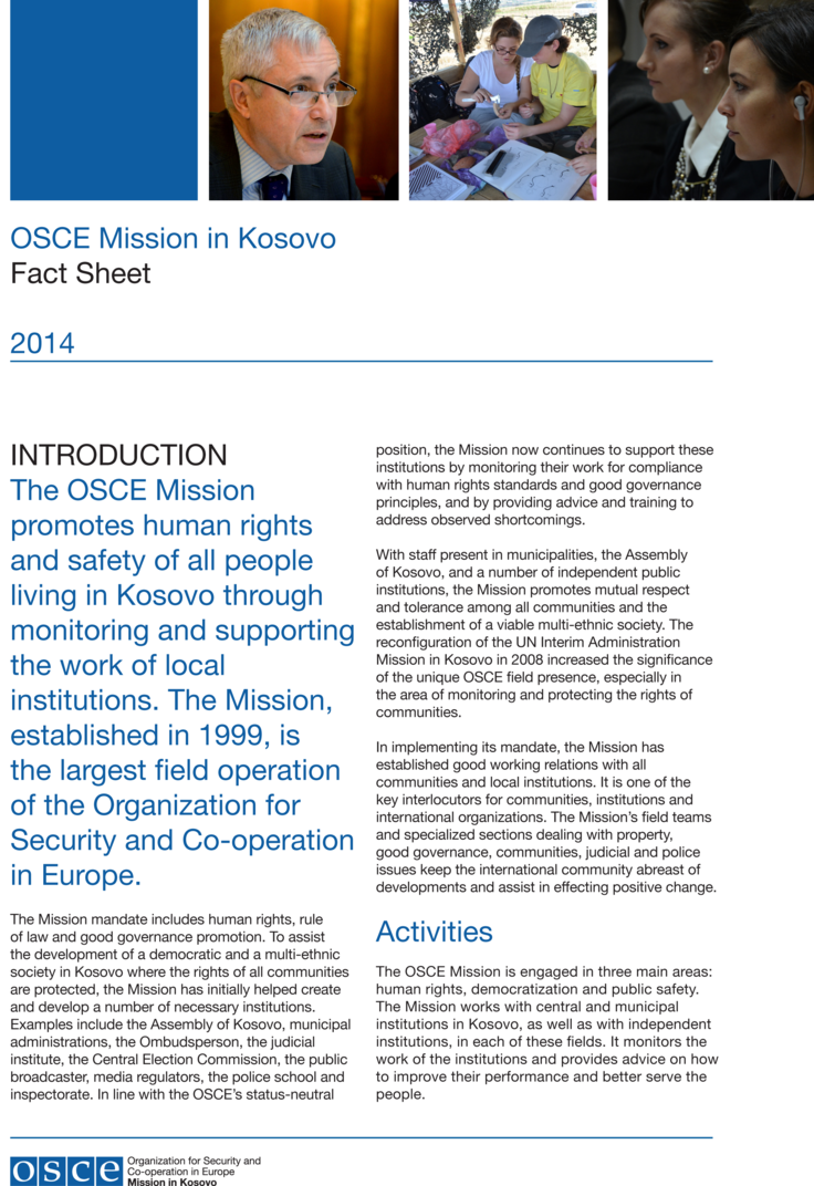 Cover of "OSCE Mission in Kosovo Factsheet 2014"