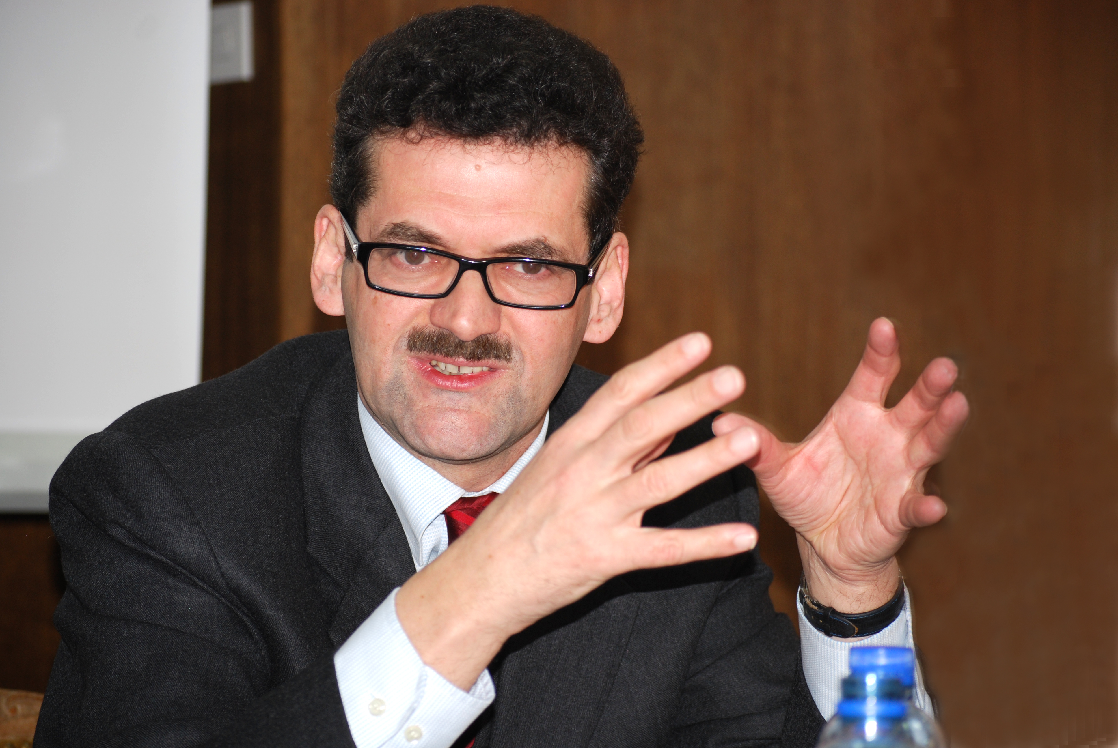 The Head of the OSCE Mission in Kosovo, Ambassador Werner Almhofer, briefs a group of students from Johns Hopkins University during a visit to Mission headquarters in Kosovo, Prishtine/Pristina, 21 January 2010.