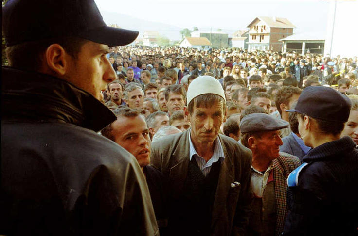 Voters in Gllogovc/Glogovac wait to cast their vote in the