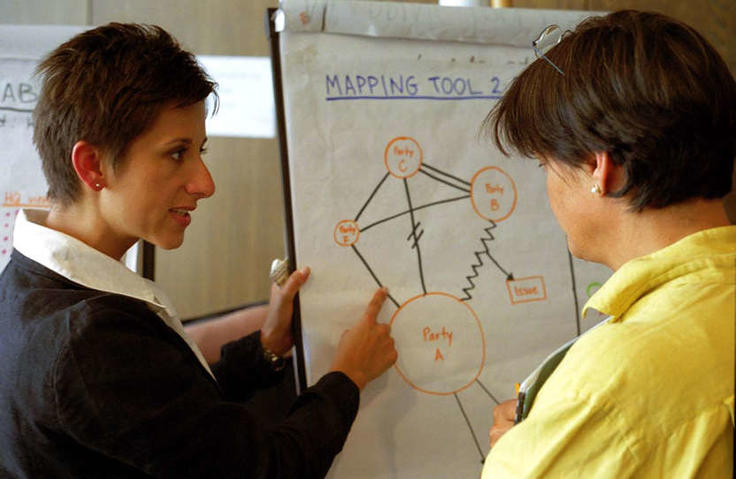 OSCE trainer explains conflict theory at a seminar in Kosovo, June
