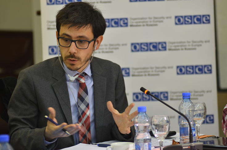 Nikola Petrovski, Senior Communities Adviser in the OSCE Mission in Kosovo, discusses problems facing the inclusion of Roma, Ashkali and Egyptian communities in Kosovo with representatives of relevant institutions and civil society, Prishtinë/Priština, 5 November 2015.