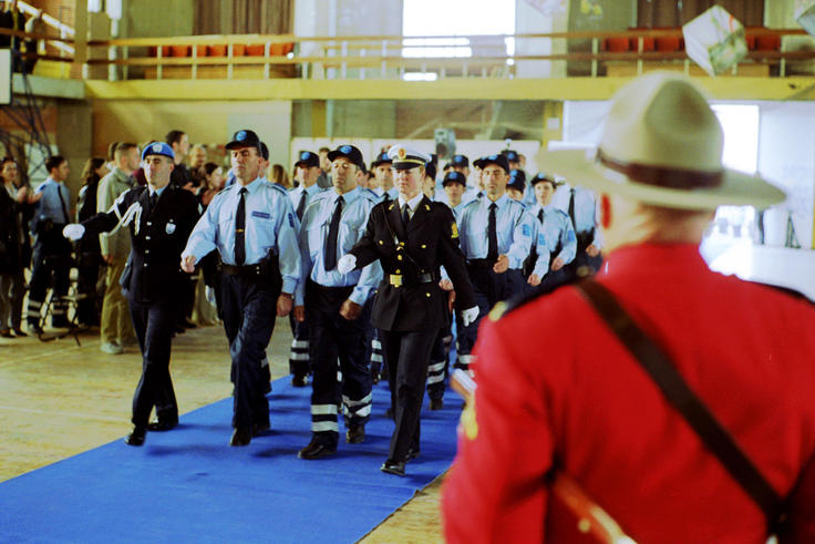 The 15th class of police cadets from the OSCE-run Kosovo Police Service School (KPSS) graduated on 13 May 2001. The class consisted of 200 cadets.
