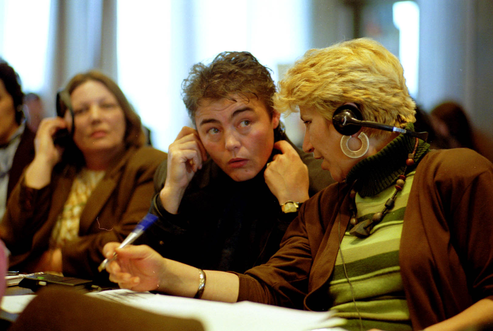 development of democracy. Here, participants take part in a seminar on the role of women in Kosovo politics.
