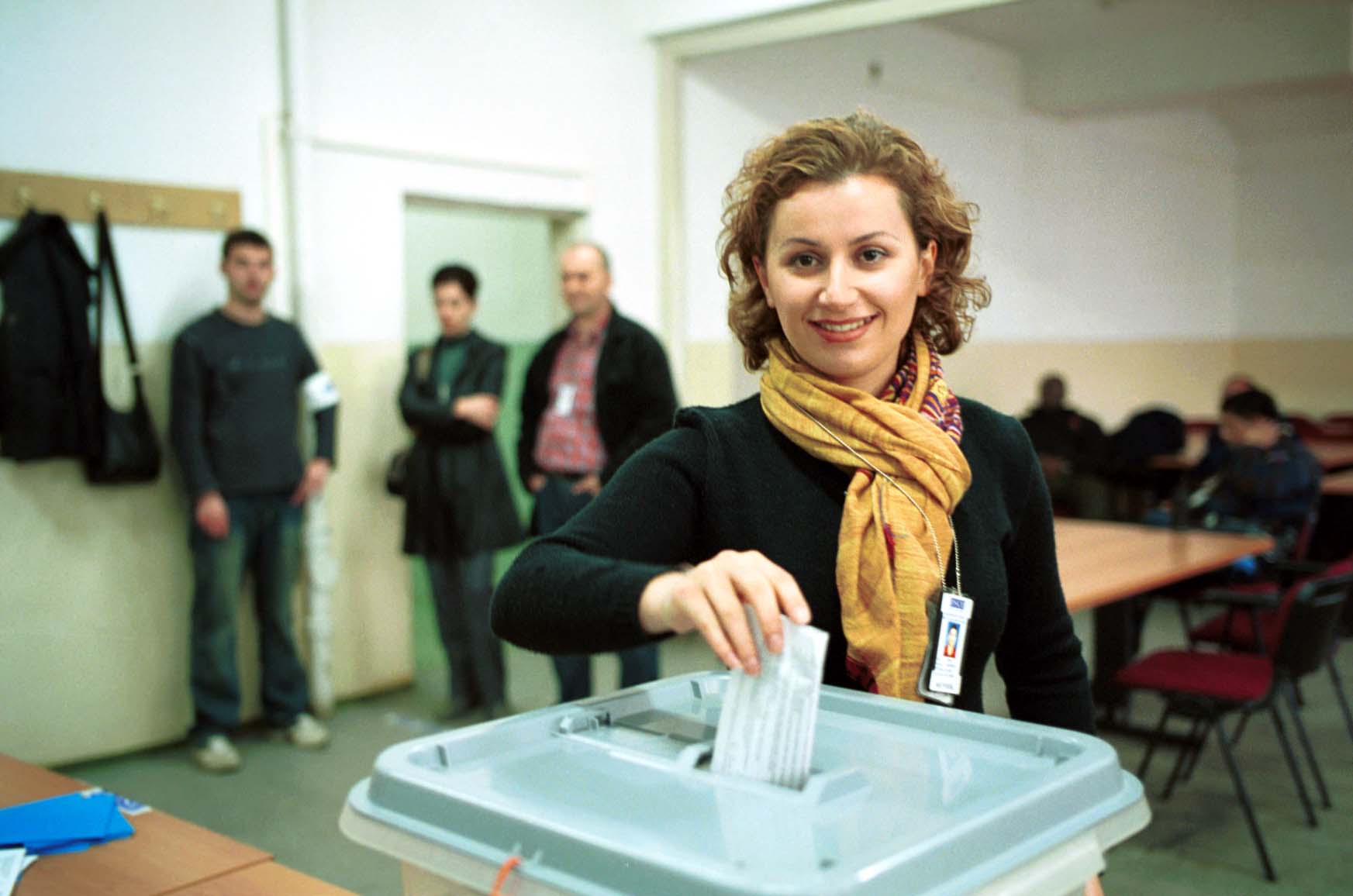 Staff of the OSCE Mission in Kosovo, who will be working on 17 November as part of election operations, vote early for the