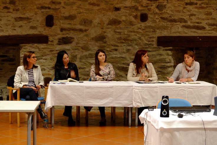 Prominent women of the “Follow Us” Initiative and alumni of the 2015 Dialogue Academy, Hasnije Ilazaj, Dubravka Filipovski, Valentina Zeka, and Aleksandra Gajić (from right to left), talk to 2016 Dialogue Academy participants about their experiences, women solidarity, and challenges in political life, Stadtschlaining, Austria 1 October 2016.