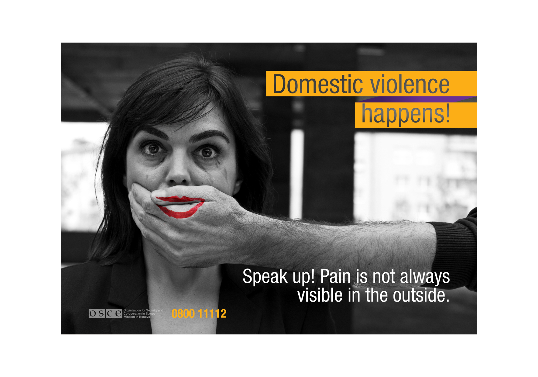 "Speak up! Pain is not always visible in the outside." : A message of the online campaign, encouraging victims to speak up and take action against domestic violence.