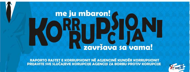 "Corruption ends with you! Report corruption cases to the Anti-Corruption Agency" is the slogan of a campaign co-sponsored by the OSCE in Kosovo, which was was launched in Pristina on 11 December 2006, Albanian and Serbian version.