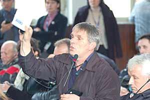 A Bosniak representatives from the village of Reeane/Recan in Kosovo's Prizren municipality asks a question to OSCE Mission Head Werner Wnendt, 13 February 2007.