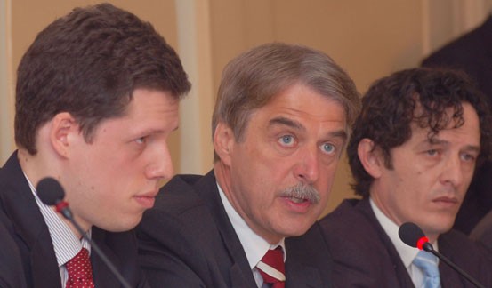 Ambassador Werner Wnendt (left), Head of the OSCE Mission in Kosovo, addresses a roundtable on Kosovo's Anti-Discrimination Law, Pristina, 18 April 2007.