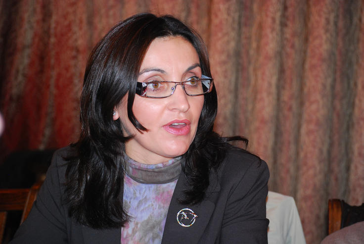 Premtime Preniqi, municipal gender officer and a member of the women's caucus from Prishtine/Pristina municipality, Kosovo, gives a speech at a workshop organized by the OSCE Mission in Kosovo, Gjilan/Gnjilane, 4 November 2010.