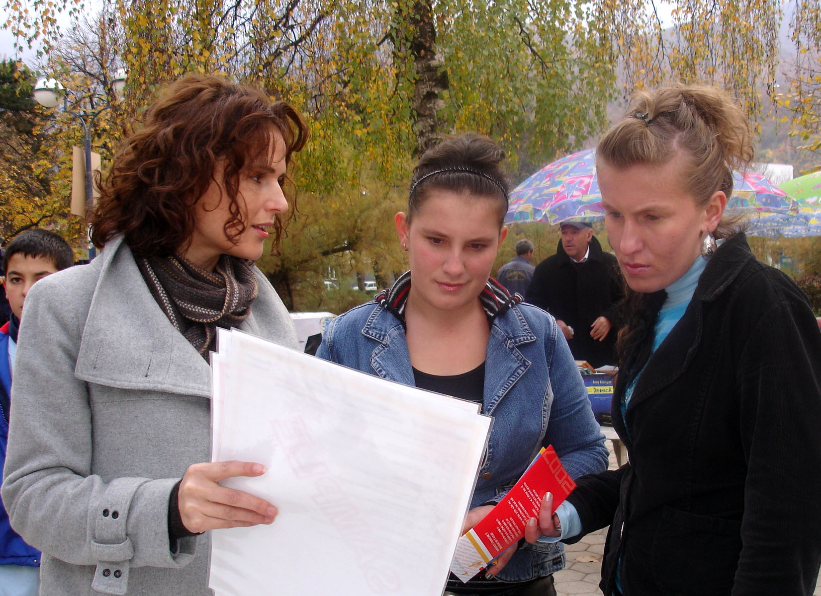 Arieta Koliqi (left) of the OSCE Mission in Kosovo explains the voting procedure for the 17 November elections to citizens of Peje/Pec as part of the Mission's voter education project, 7 November 2007.