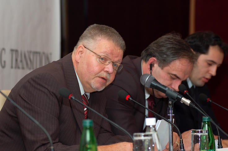 Markku Laamanen, Deputy Head of the OSCE Mission in Kosovo, speaks at an OSCE workshop on sustainable property restitution, and the returns and reintegration process in Kosovo, organized by the Mission, Prishtine/Pristina, 26 November 2007.