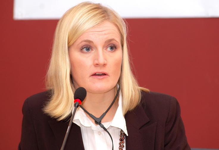 The OSCE Mission in Kosovo's Spokesperson, Elli Flen, moderates a press conference on the final results of the elections for the Kosovo Assembly, Prishtine/Pristina, 3 December 2007.