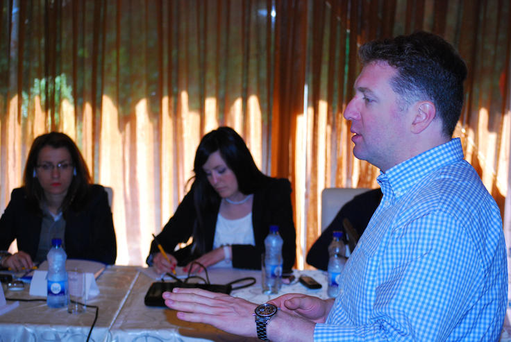 The Georgian Ombudsperson and a member of the Council of Europe’s Committee for the Prevention of Torture, George Tugushi, shares his expertise on detention monitoring during a three-day training workshop organized by the OSCE, 28 June 2011.