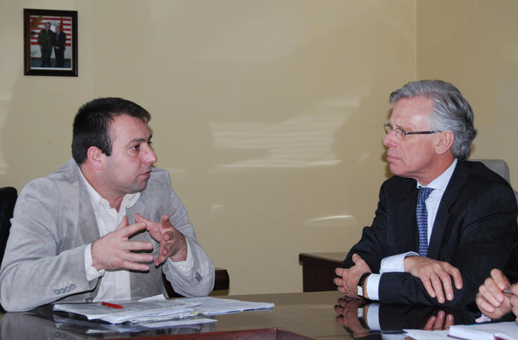 The OSCE High Commissioner on National Minorities, Knut Vollebaek (right), meets Hamdi Aliu, former Deputy Municipal Assembly Member of Strpce/Shterpce municipality, 12 January 2008.