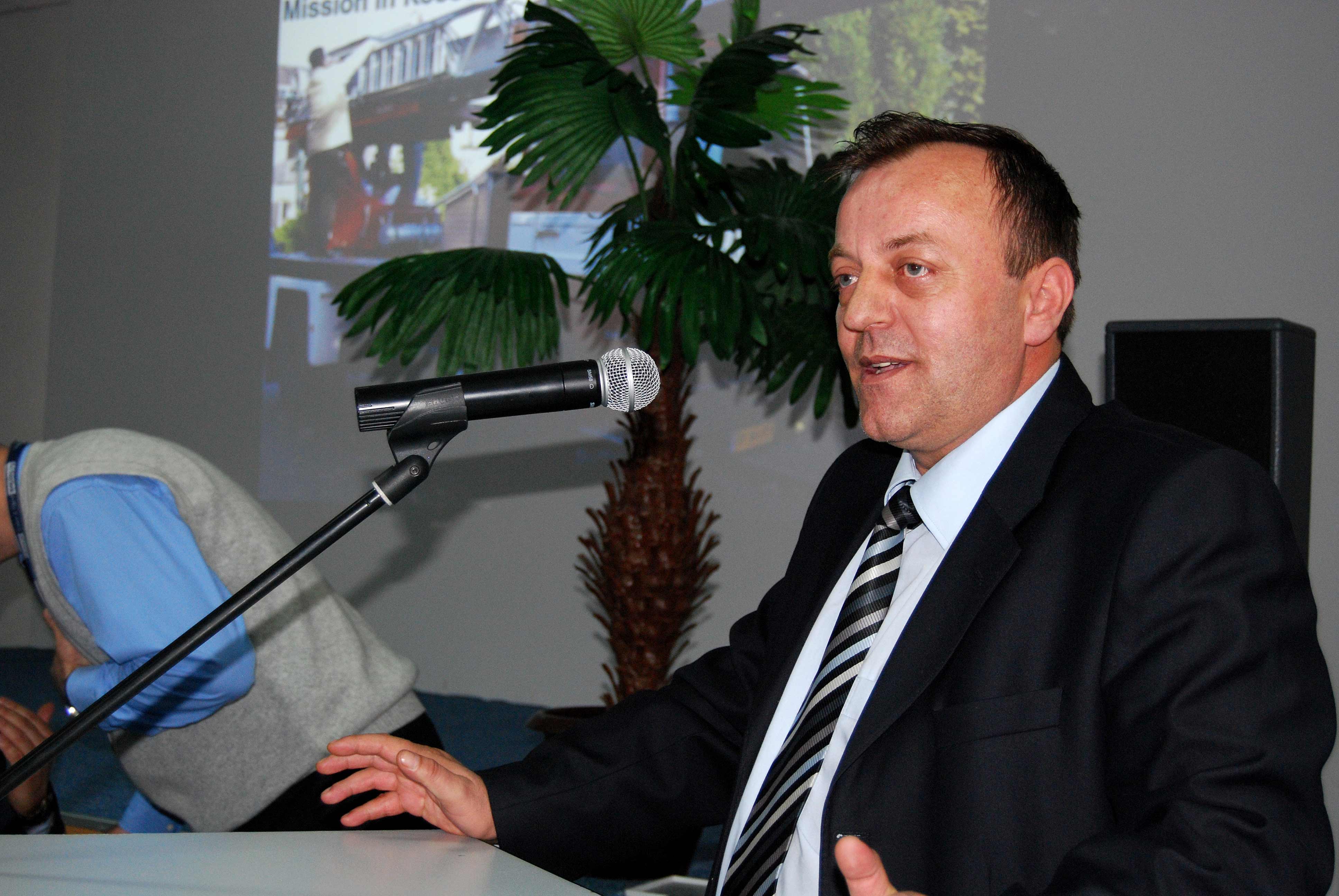 Bislim Zyrapi, Director of the Department of Emergency Management, speaks at the presentation of an OSCE catalogue of public safety training locations and facilities in Kosovo, Vishtrri/Vucitrn, 7 February 2008.