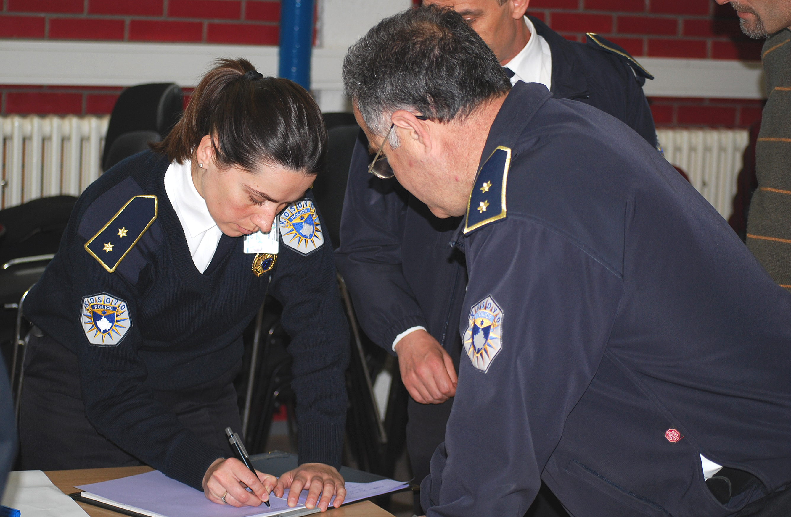 Kosovo Police Service senior officers split into working groups at a specialized training course on strategic marketing for police, run by the Austrian Development Agency with the support of the OSCE Mission in Kosovo, Vushtrri/Vucitrn, 15 April 2008.