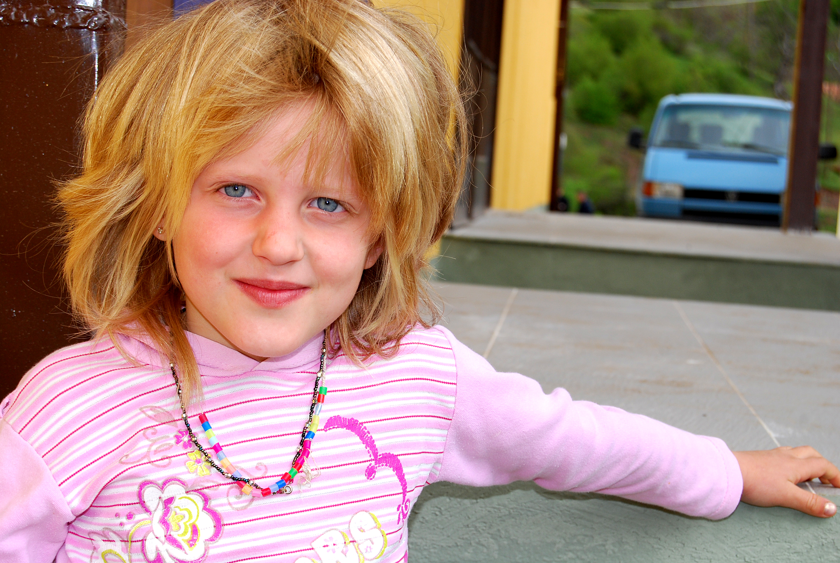 A child from Kadri Bistrica primary school in Bistrice/a village, Leposavic/Leposaviq municipality, on her way to get a book from the Mission in Kosovo-supported Library Bus, 23 April 2008.