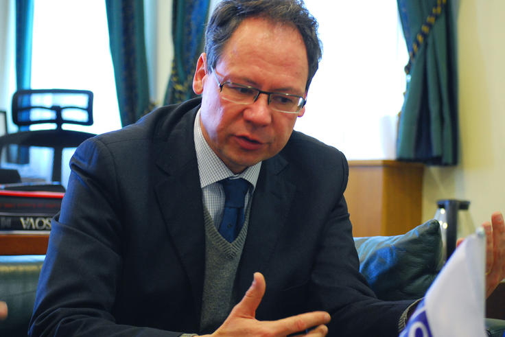 Klaus Koegeler, the Deputy Head of the Permanent Mission of Austria to the OSCE, during a meeting with the Vice President of the Kosovo Assembly Xhavit Haliti, Prishtine/Pristina, 12 March 2012.