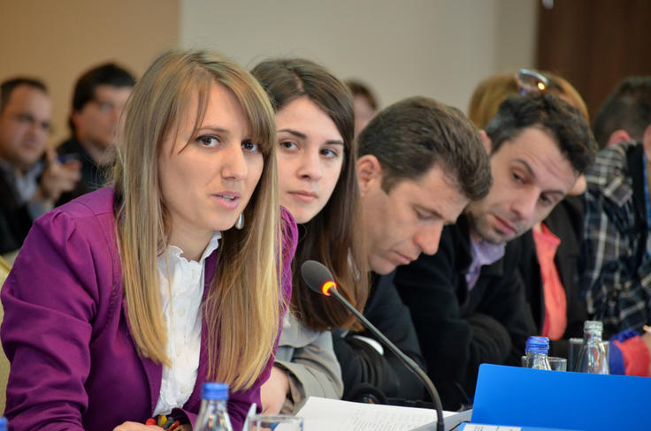 Mirlinda Axhani from Kacanik municipality Youth Action Council speaks at a Mission-organised conference on voluntarism and participation of youth in decision-making, Prishtine/Pristina, 22 March 2012.
