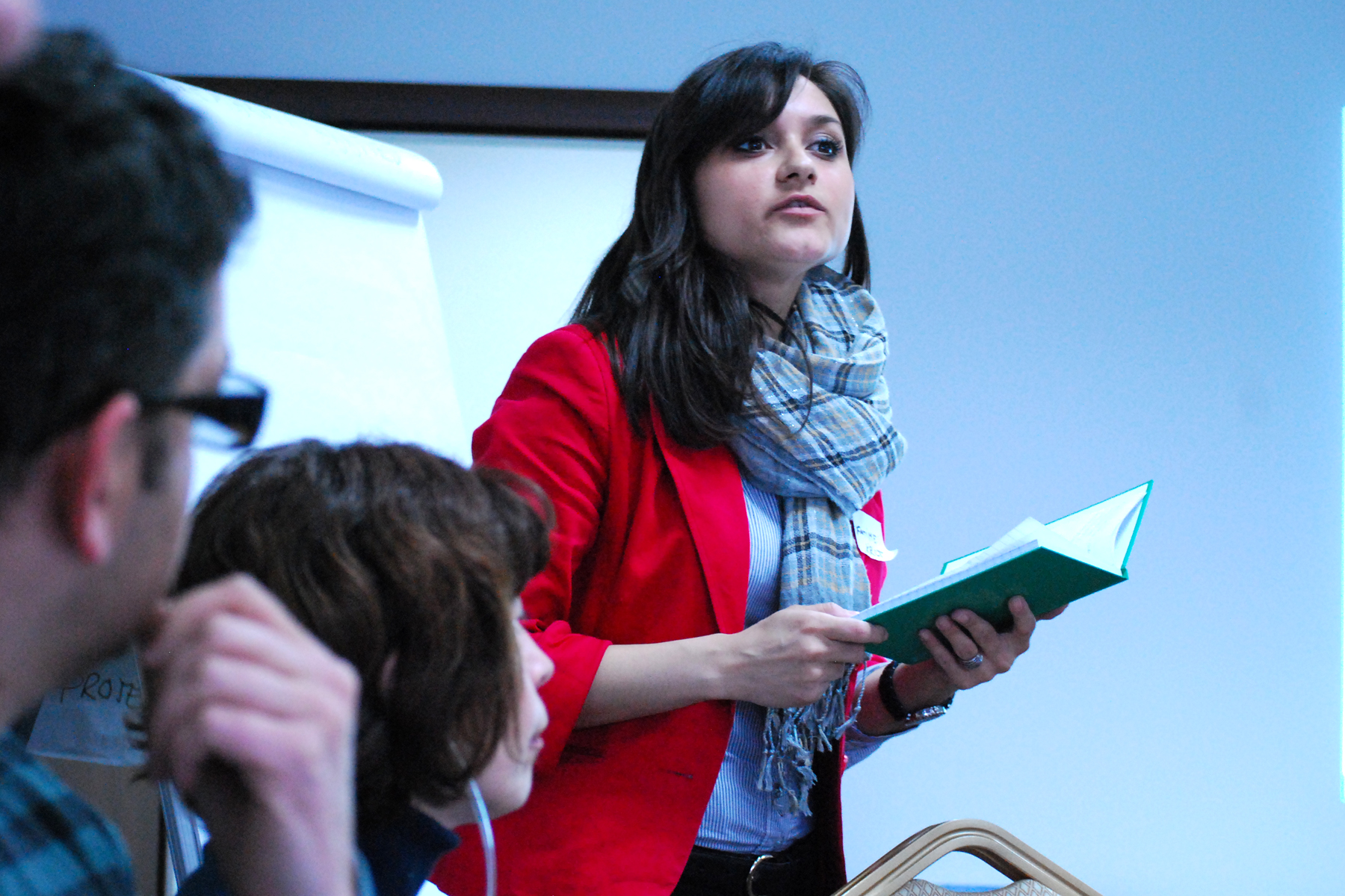 Fatime Halititi, from the Kosovo rehabilitation centre for torture victims, presents her group conclusions at a Mission-supported workshop on Fund Raising and Project Management Cycle, Prishtine/Pristina, 17 April 2012.