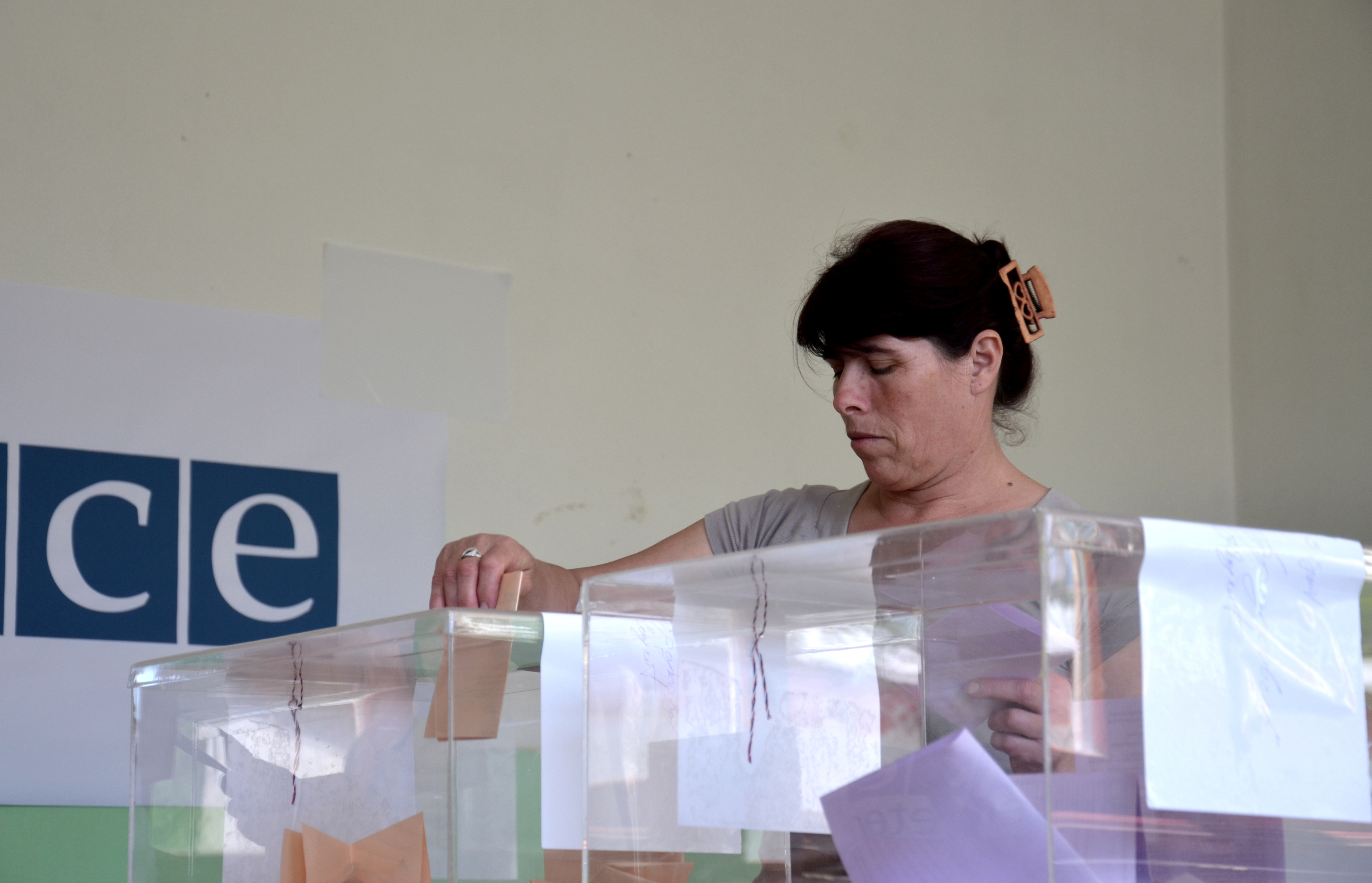 A voter casts her ballot in an OSCE-run ballot facilitation centre in Donja Gušterica/Gushtericë e Ulët, 6 May 2012.