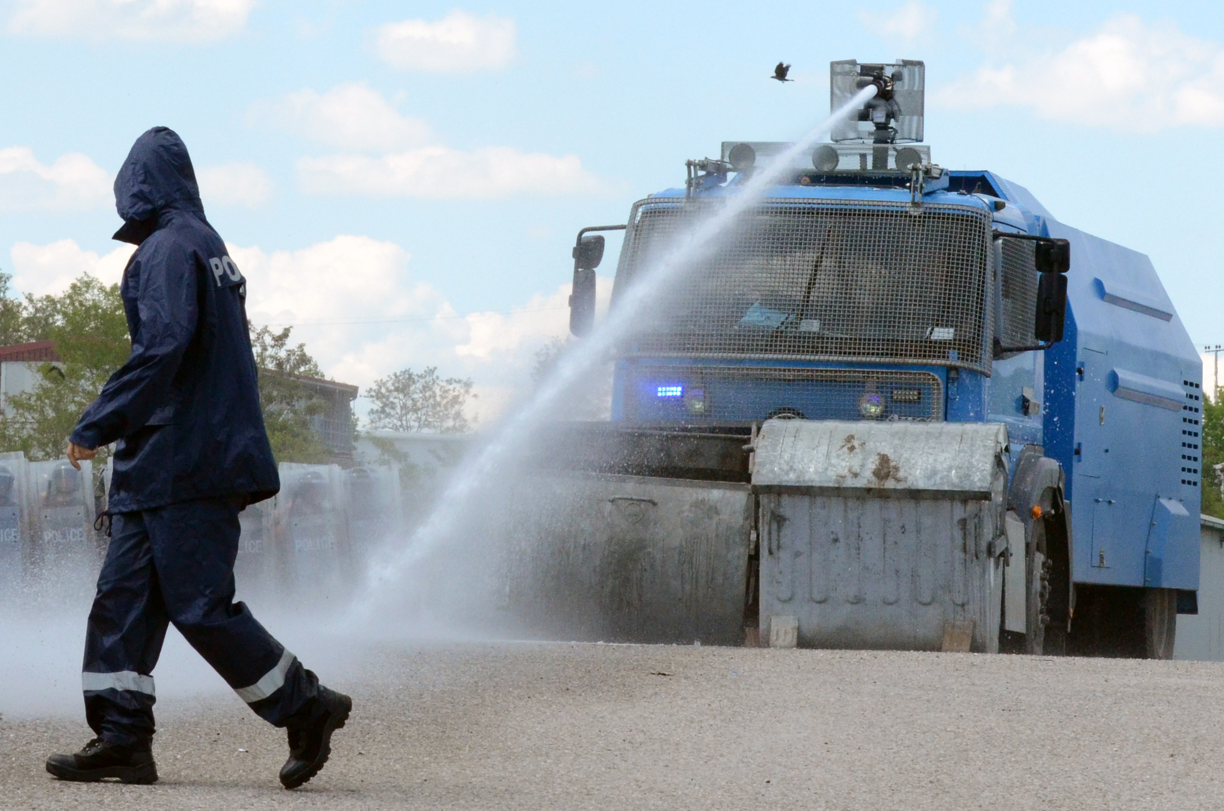 A water cannon truck clears the road during an OSCE-provided training on crowd control for Kosovo police, Mitrovicë/Mitrovica, 10 May 2012.