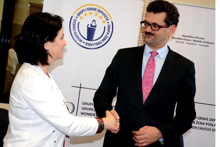 The Chairperson of the Assembly of Kosovo Women Caucus Teuta Sahatqija (l) meets with the Head of the OSCE Mission in Kosova Ambassador Werner Almhofer, at the signing ceremony of a co-operation agreement, Prishtinë/Priština, 14 June 2012.