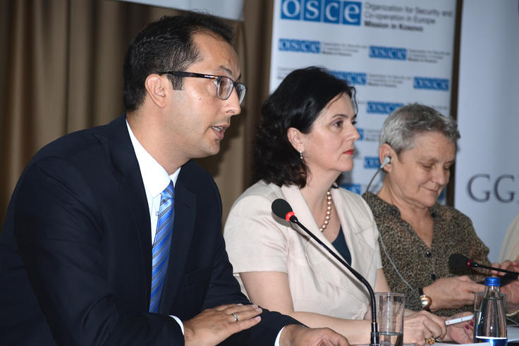 Armend Bekaj, the OSCE Mission’s Chief of Analysis and Reporting Cell, moderates an OSCE-organized conference on women's empowerment in decision making, in Prishtinë/Priština, 22 June 2012.