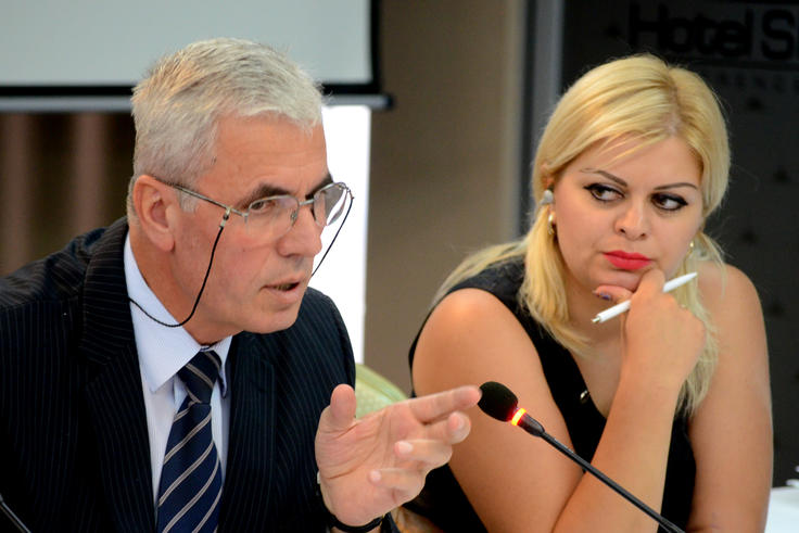 Kosovo Ombudsperson Sami Kurteshi (l) and Sonila Kadaraja, Advisor to the National Assembly of Albania, at the launch of a report by the OSCE Mission in Kosovo on the status of relations between the Kosovo Assembly and independent institutions, Prishtinë/Priština, 11 July 2012.
