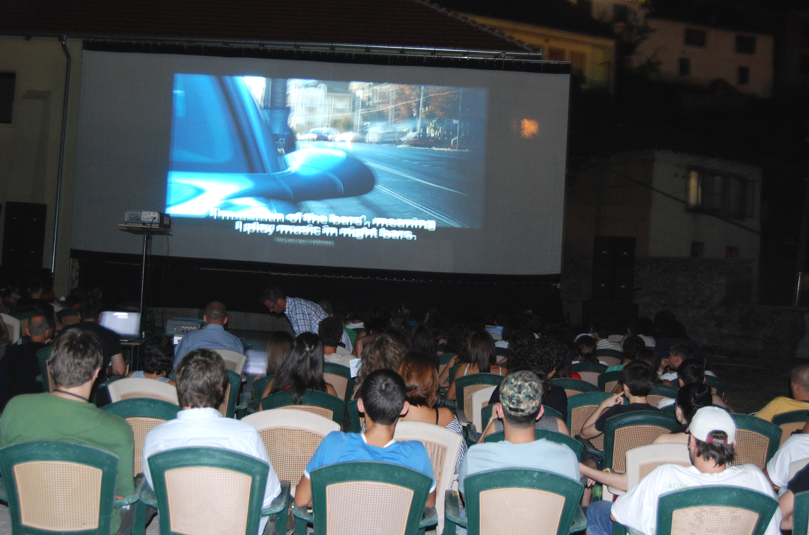 Film fans enjoy a late night movie at the improvised outdoor cinema Nënkalaja (Under the Fortress) at Dokufest, Kosovo's largest documentary and short film festival, taking place in Prizren from 4-10 August 2008.