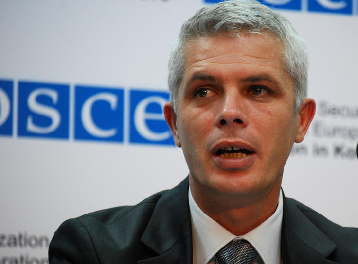 Chief Executive Officer of the Kosovo Police Inspectorate, Enver Rrustemi, speaks at an OSCE press conference on the first anniversary of the Inspectorate's Investigation Department, Prishtine/Prstina, 7 October 2008.