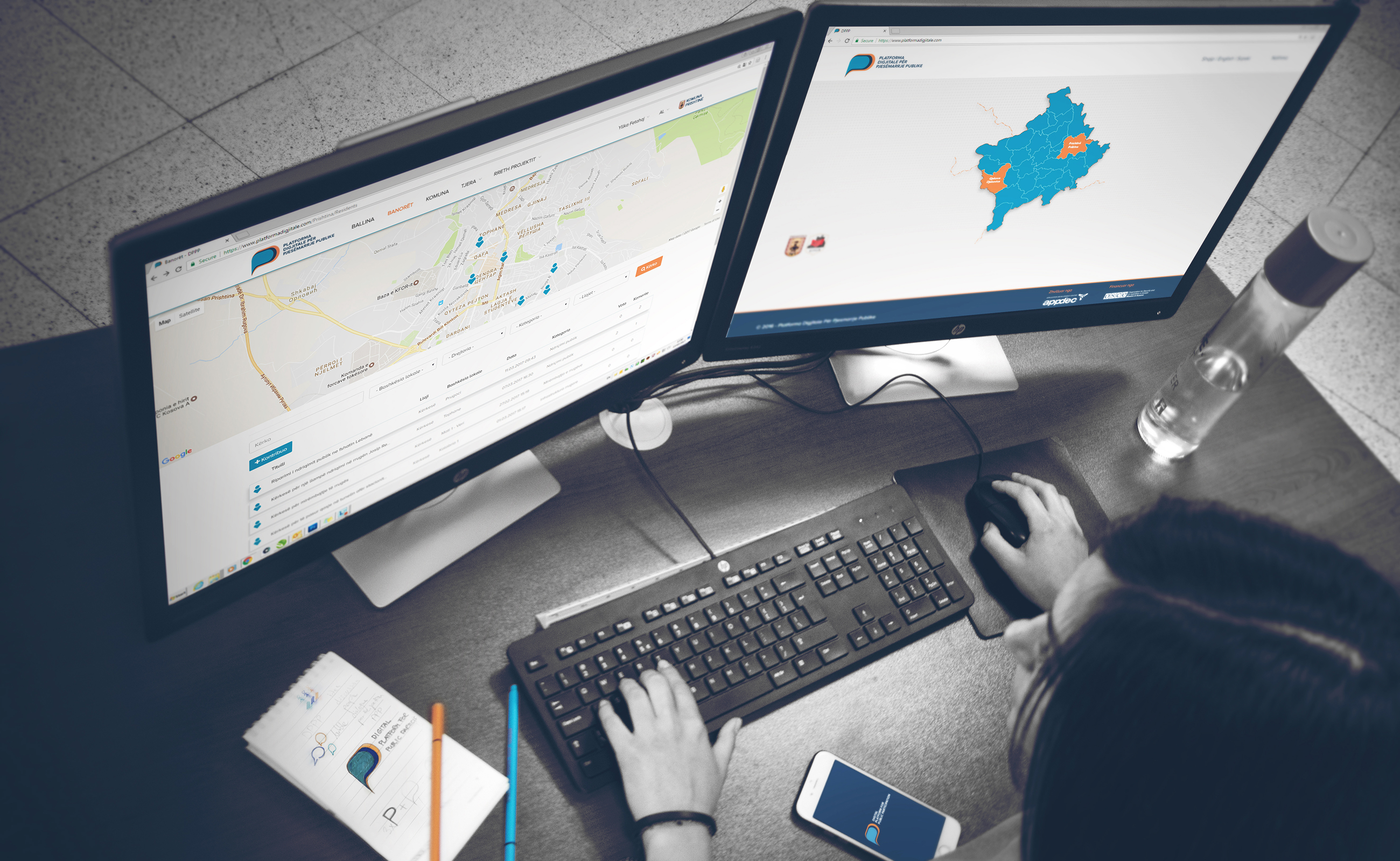 OSCE Mission member Yllka Fetahaj surfs the Digital Platform for Public Participation website. The Mission designed the platform logo and landing page.