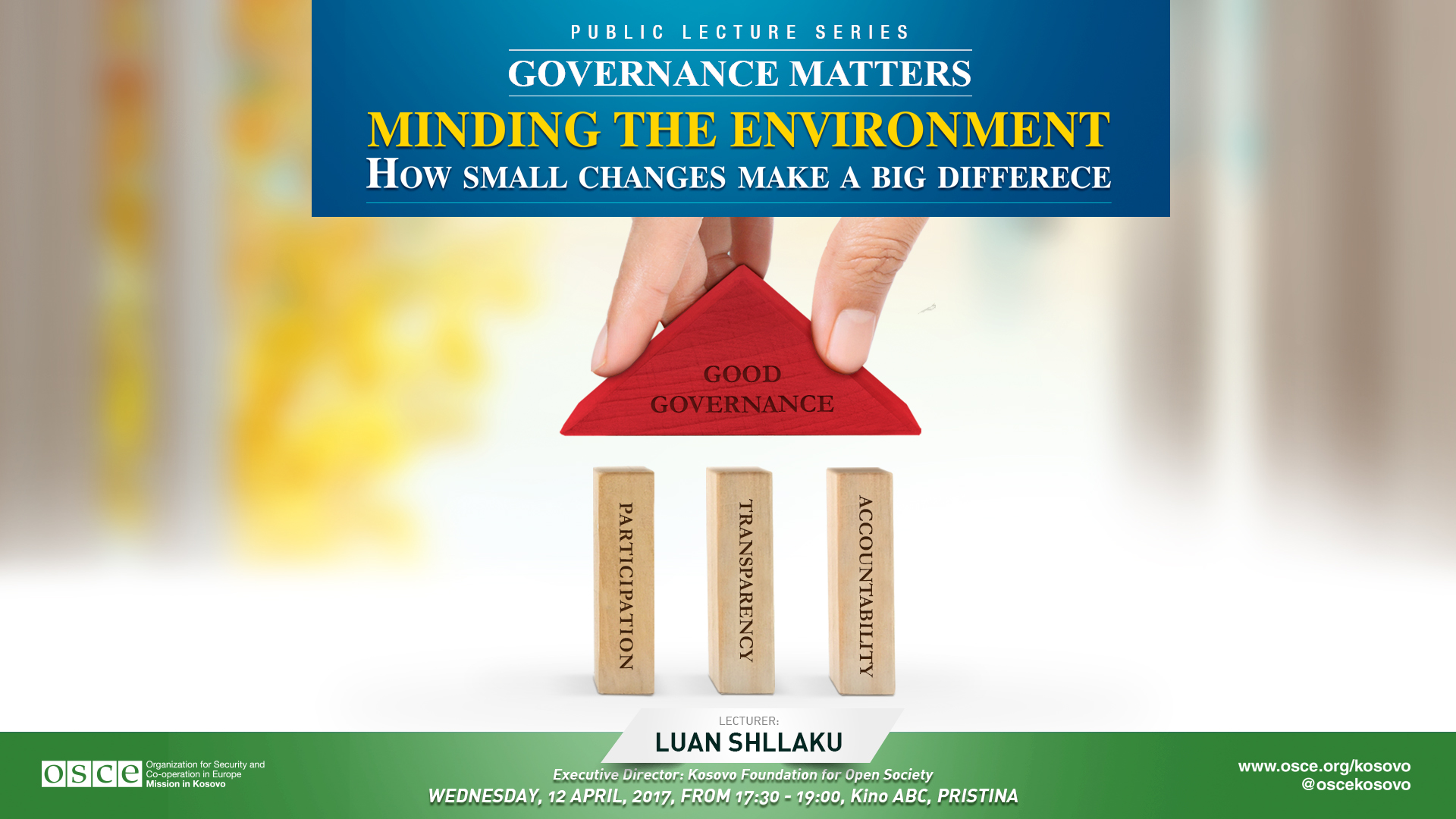 Poster promoting OSCE-organized public lecture series on governance and how it affects the lives of everyday people
