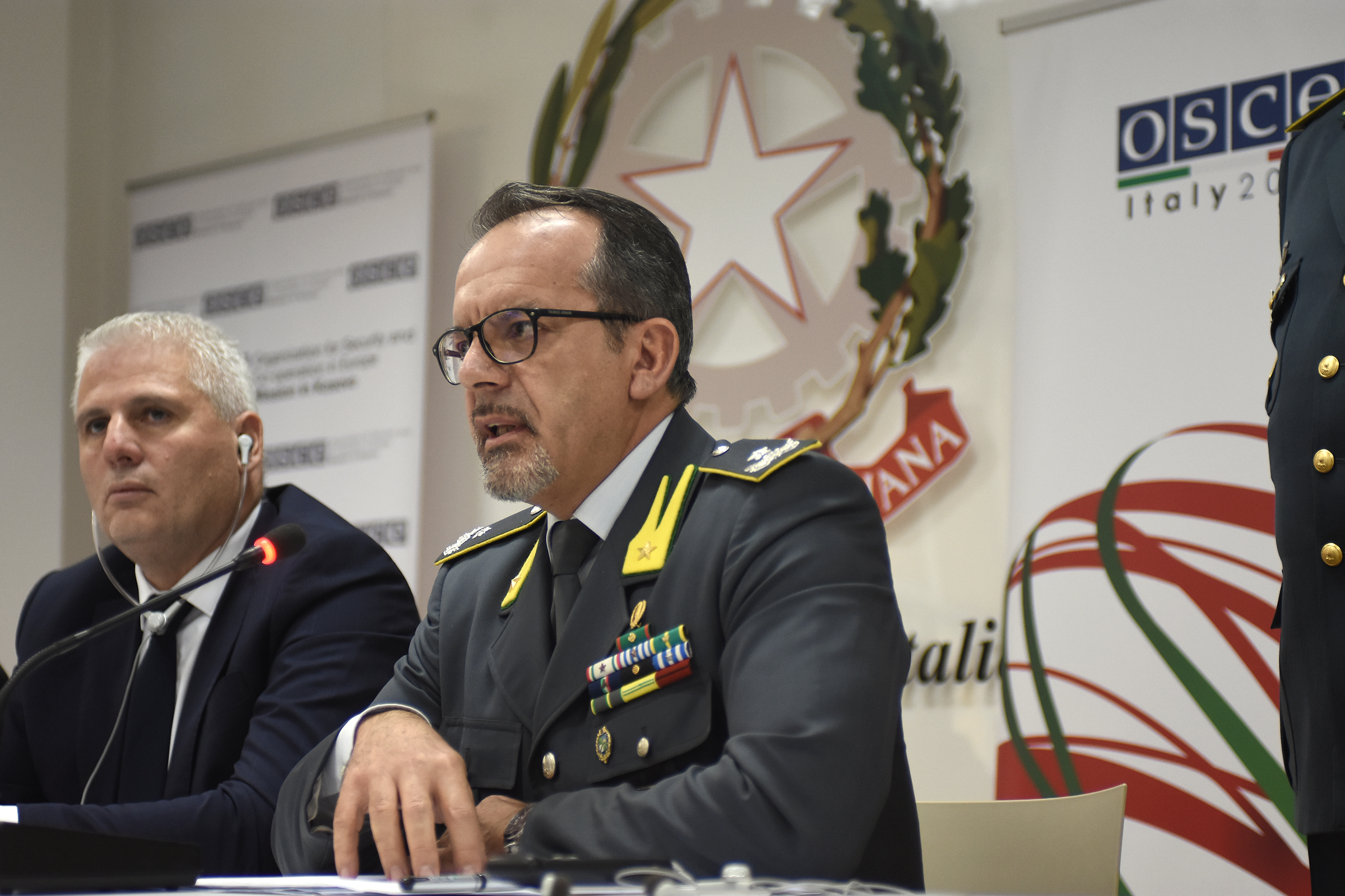 Brigadier General Gaetano Luigi Cosimo Scazzeri, the Head of the Guardia di Finanza Anti-Corruption Special Unit, speaking at the OSCE-supported advanced anti-corruption training for law enforcement agencies in Kosovo, Prishtinë/Priština, 17 October 2018.