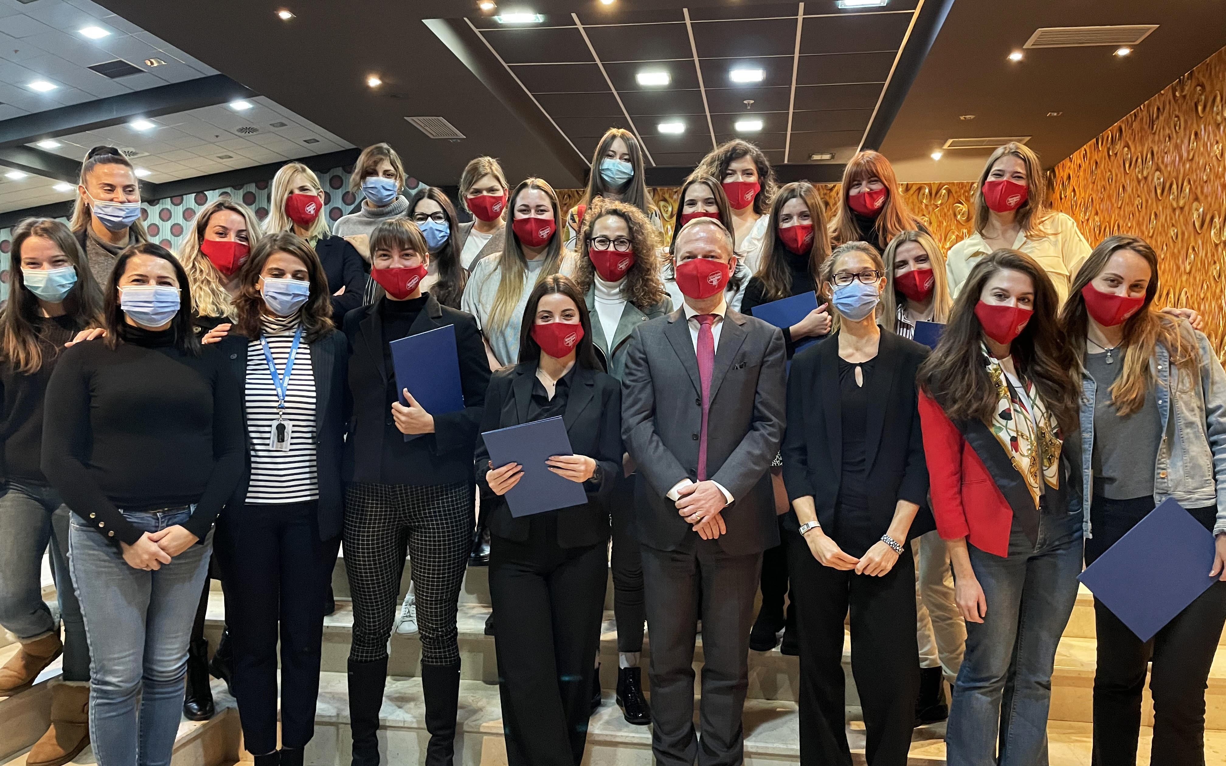 Deputy Head of the OSCE Mission in Kosovo, Kilian Wahl, after handing out certificates to participants of the 7th edition of the OSCE Dialogue Academy for Young Women. Mavrovo, North Macedonia, 16 October 2021.