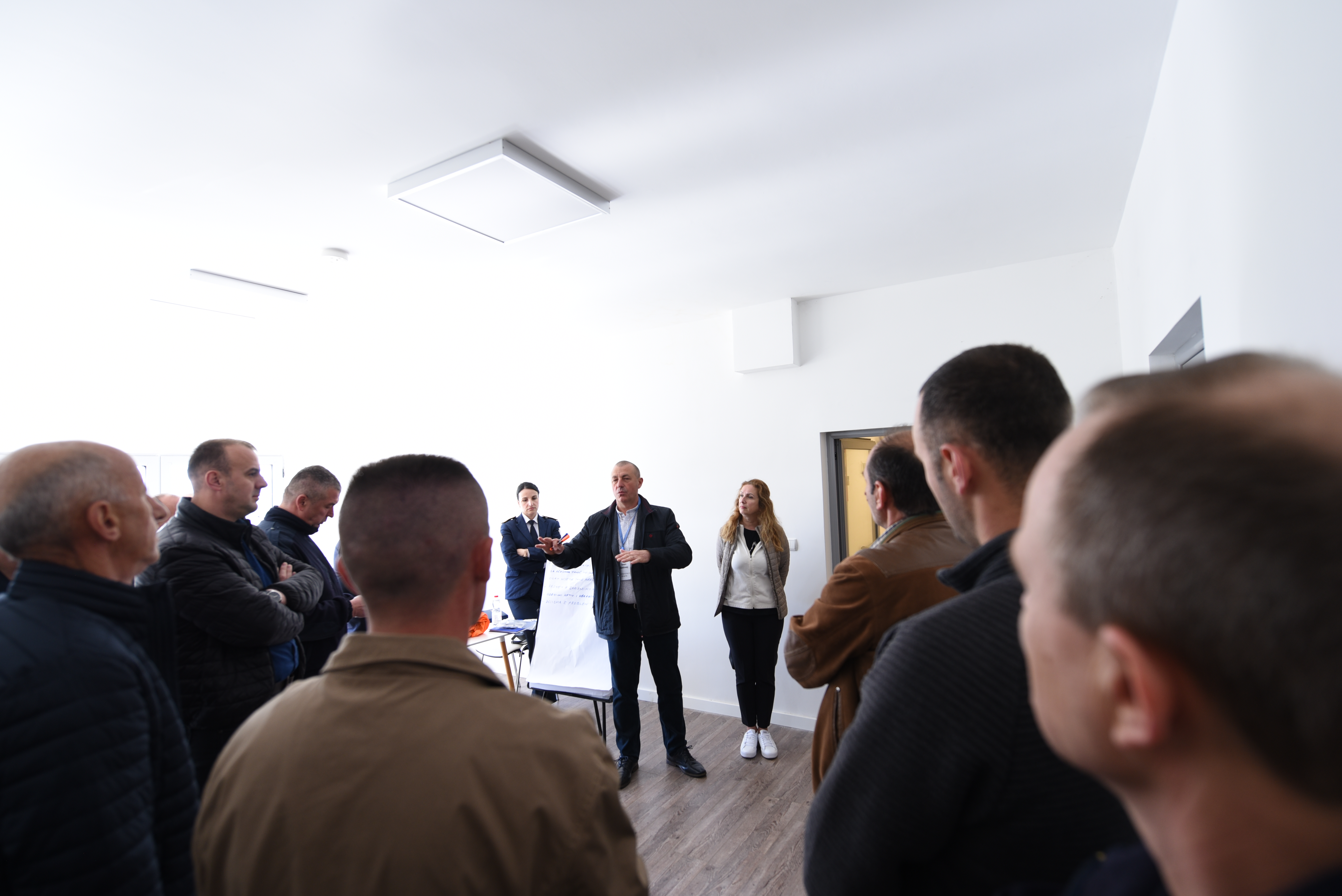 Expert negotiator Ioan Batinas of Romania, assigns roles to corrections officers during a simulated prison riot and hostage situation. Vushtrri/Vučitrn, 27 April 2023.