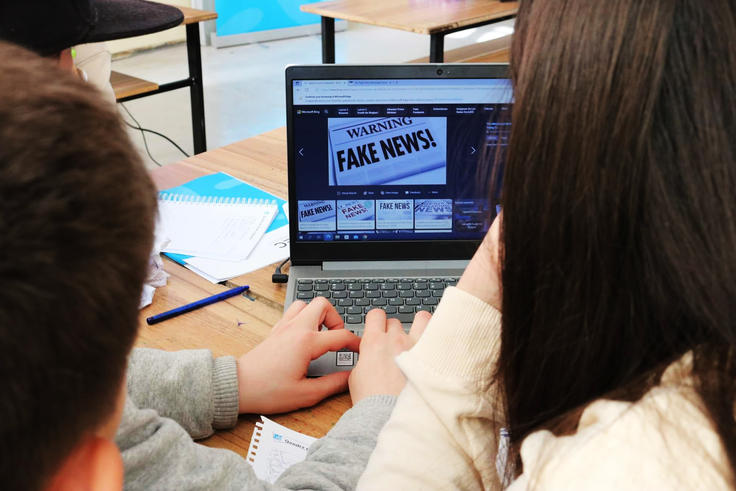 Students of Abaz Ajeti elementary school in Gjilan/Gnjiane learn about media and their use for accurate information, January 2023.