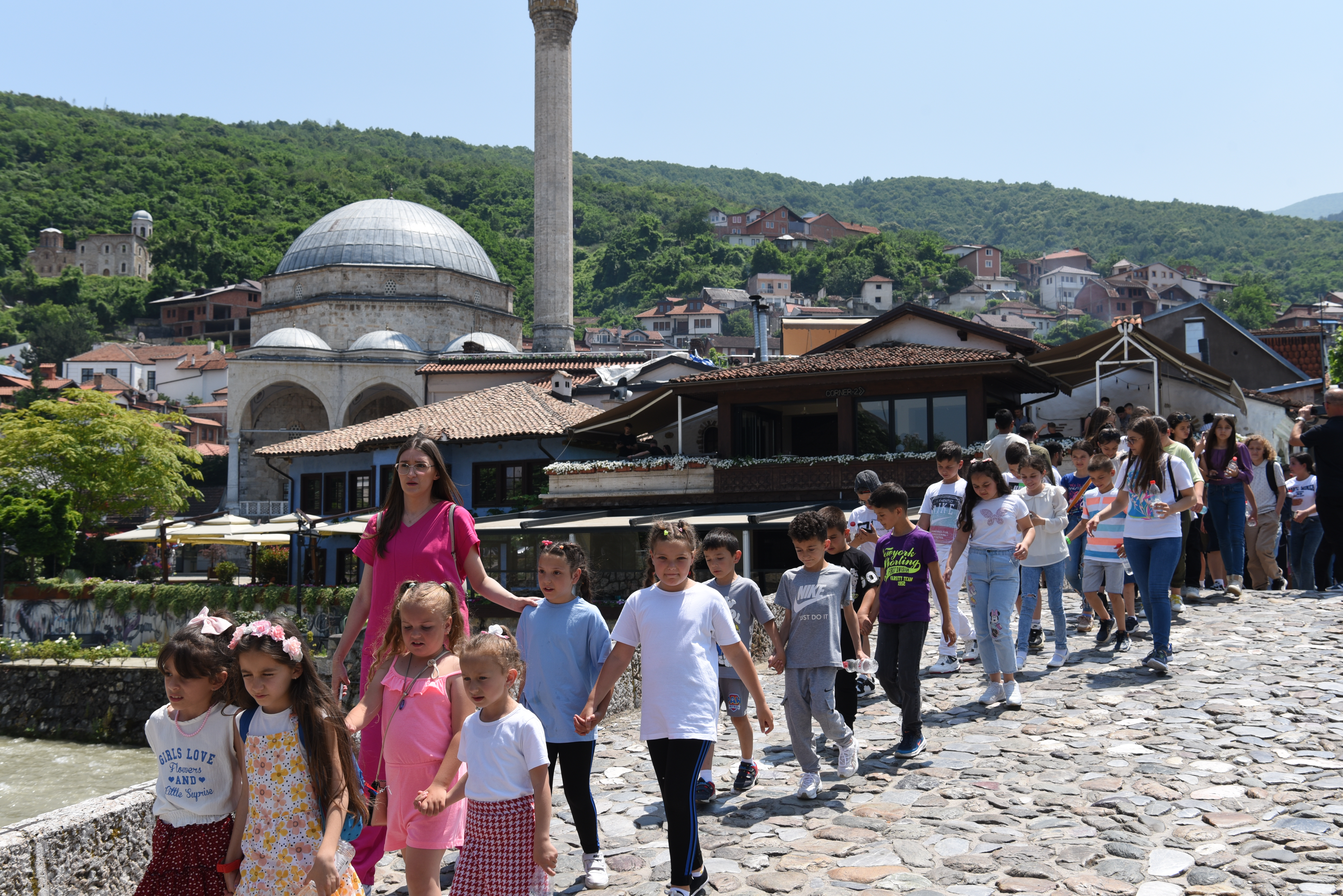 Primary and secondary school students from Mitrovica/Mitrovicë and Gjilan/Gnjilane regions on their way to the Historic Centre in Prizren, 21 June 2023.