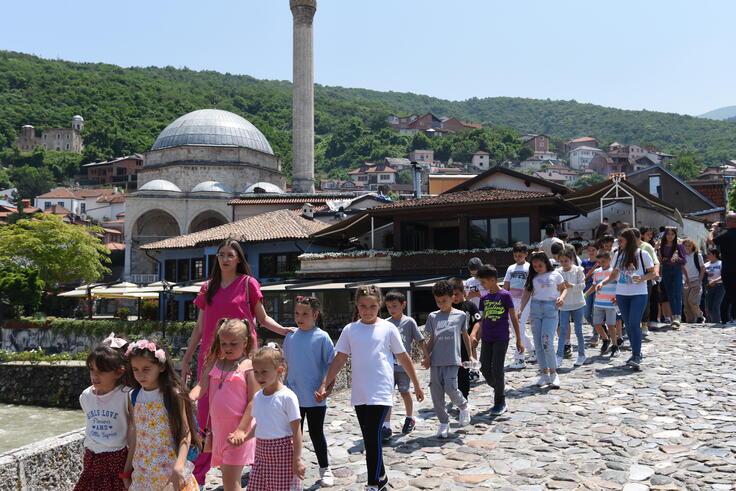 To raise awareness about the importance of cultural heritage and religious diversity, the OSCE Mission in Kosovo organized a visit for 73 primary and secondary school students from Mitrovica/Mitrovicë and Gjilan/Gnjilane regions and their teachers to four cultural and religious heritage sites in the Historic Center of Prizren.