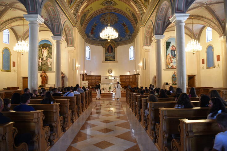Students from Kosovo Albanian, Kosovo Serb and Kosovo Turkish communities visited the Sinan Pasha Mosque, the complex of Serbian Orthodox Saint George Cathedral, Roman Catholic Cathedral of Our Lady of Perpetual Help, the Halveti Tekke and the Church of Our Lady of Ljeviš. Their representatives welcomed the students and shared a brief history, including the importance of protection and preservation of cultural and religious sites belonging to different communities.
