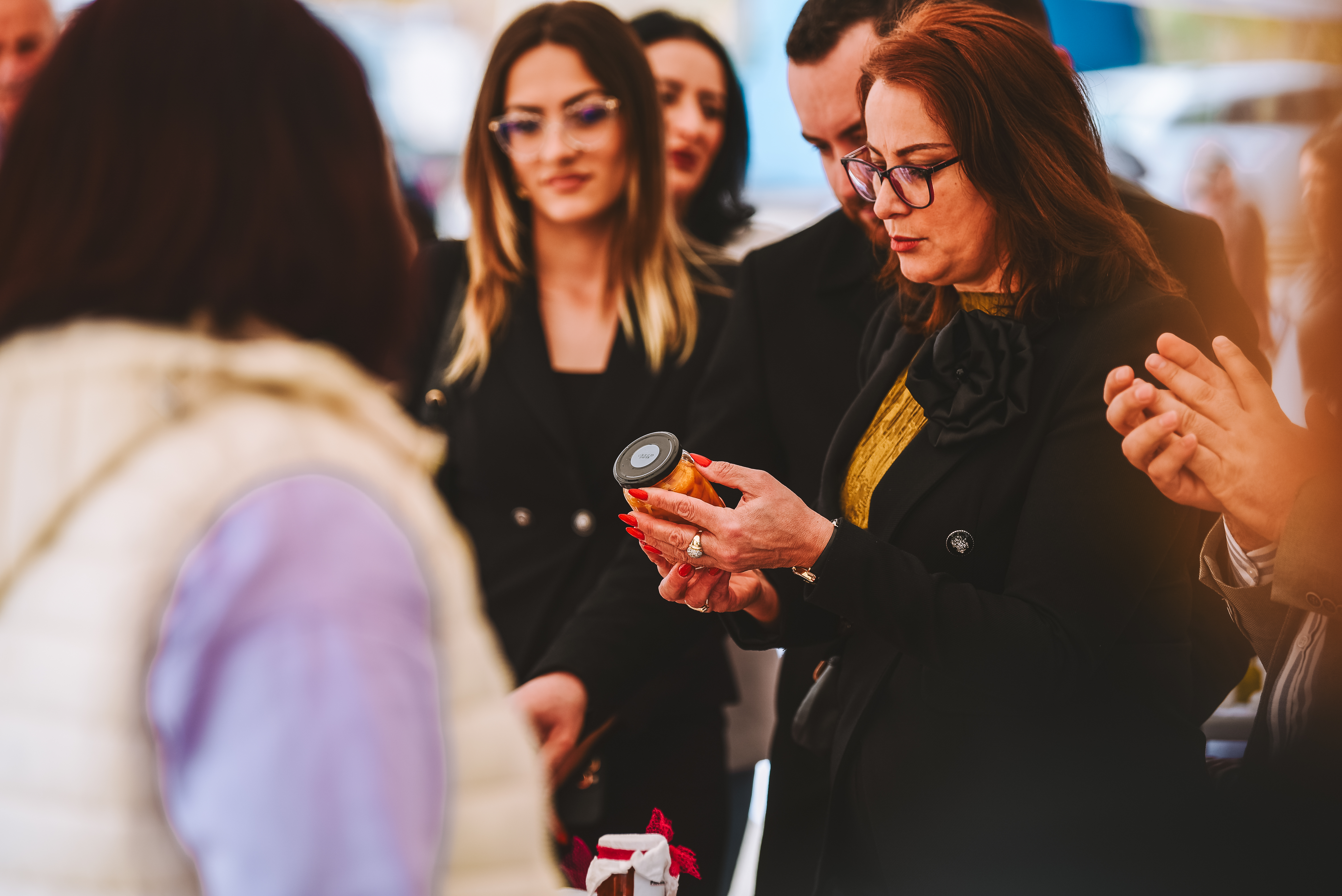 Hyra Bytyqi looks at products displayed at the fair.