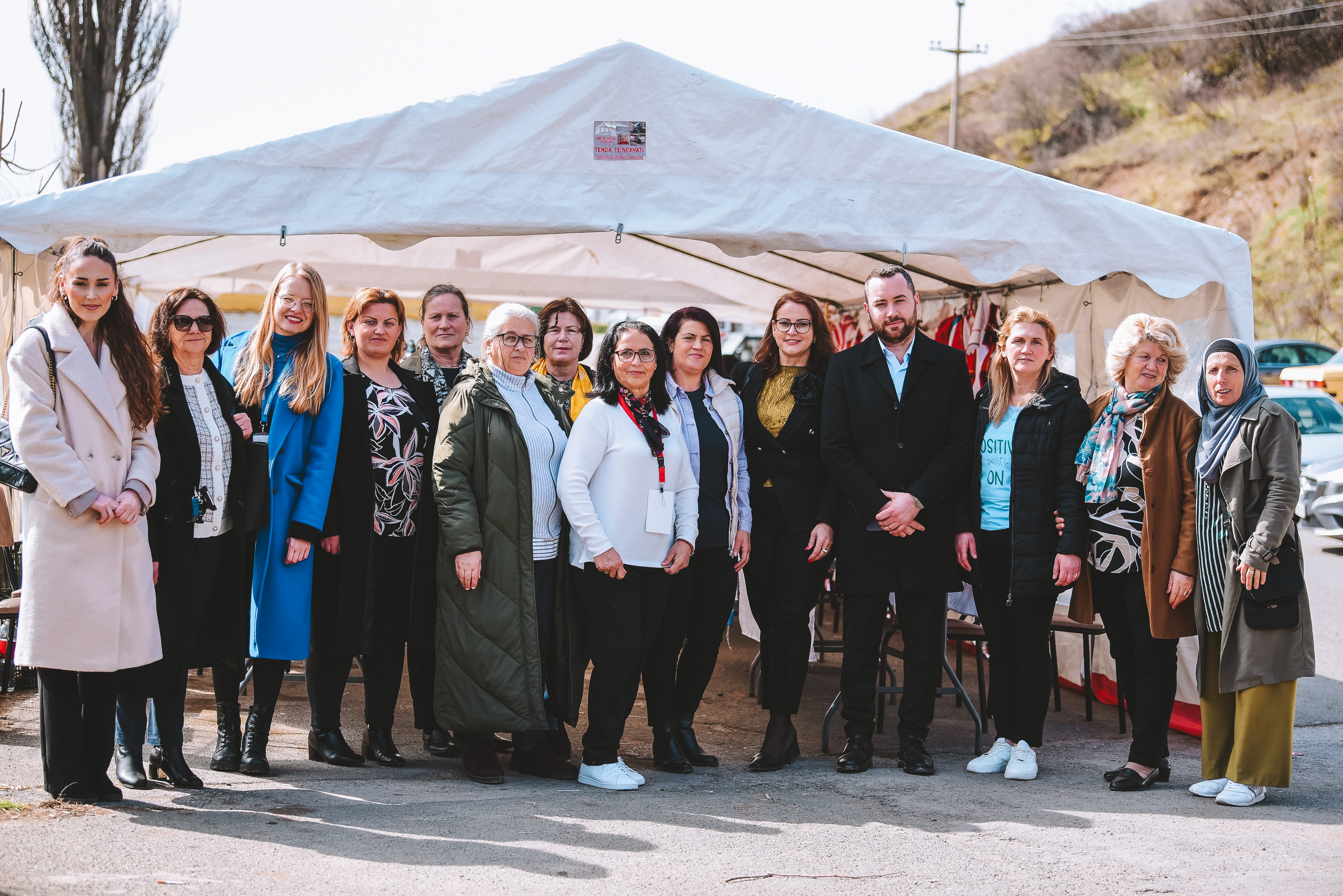 Local women businessowners, municipal officials and OSCE Mission in Kosovo representatives pose for a family photo.