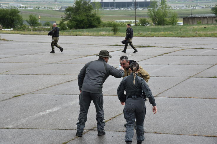 Participants during simulation of reporting from a crisis situation. Lipjan/Lipljan, 26 April 2024