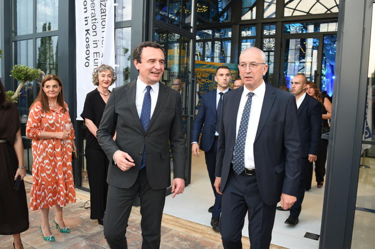 Ambassador Michael Davenport and Prime Minster Albin Kurti at the reception celebrating the 25th anniversary of the OSCE Mission in Kosovo, 25 June 2024.