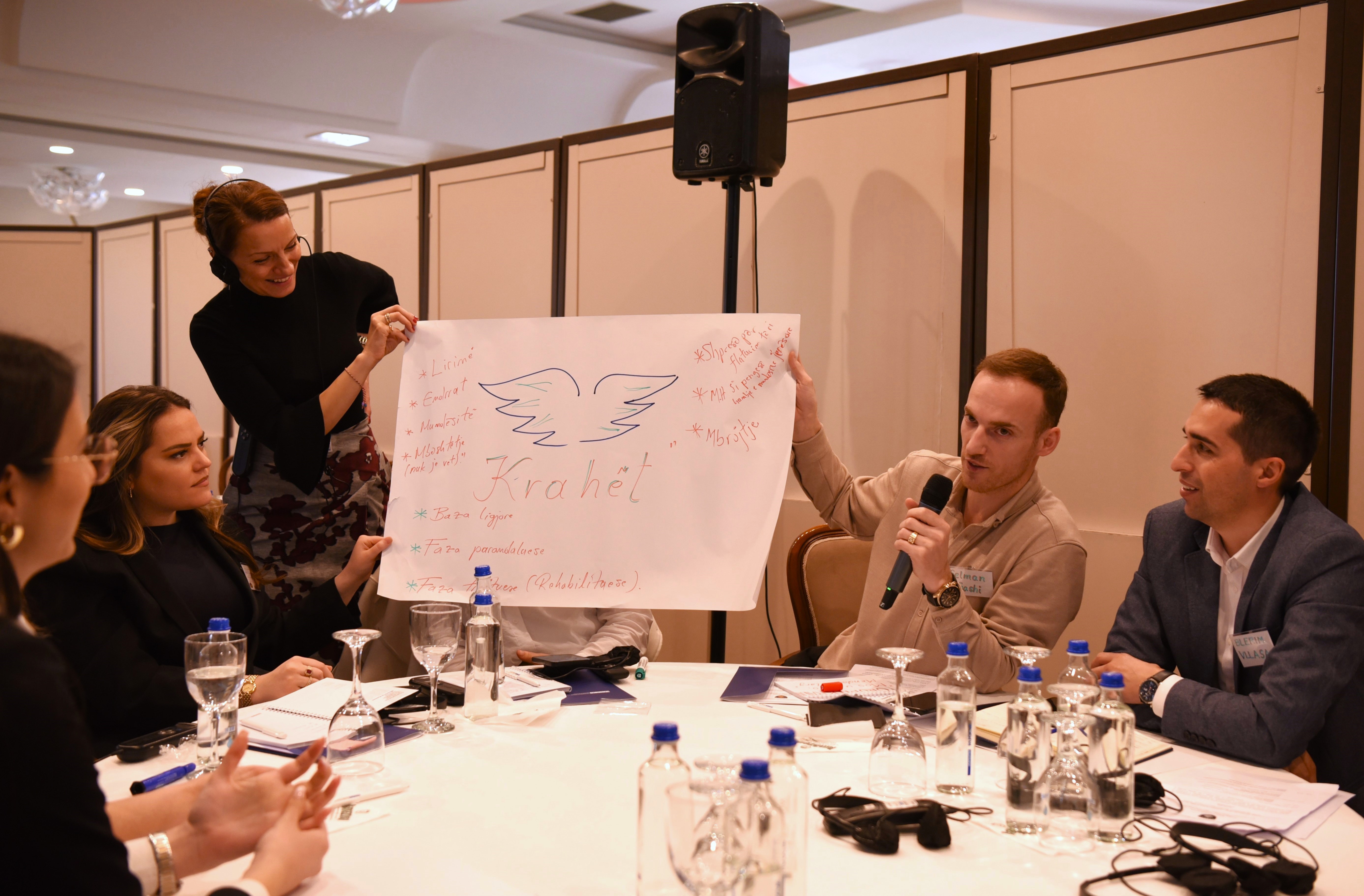 “Wings mean freedom.” OSCE Mission in Kosovo Gender Advisor, Biljana Nastovska, and workshop participants discuss needs of those affected by early marriages, Obiliq/Obilić, 3 April 2025.